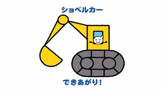 ジッタちゃんのえかきうたシリーズです。 男の子が大好きな「ショベルカー」を、歌いながら描ける絵描き歌をご紹介しています。 丸・三角・直線を上手く組み合わせて、簡単に描けます。最初は何を描いているのだろうと思いますが、最後に回転させると、なんとショベルカーが出来上がります。 徐々に出来上がっていくわく…
